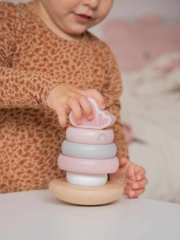 Ontdek de betoverende Label Label stapeltoren balance in zachte roze tinten. Deze houten stapeltoren daagt kinderen uit om blokken te stapelen, balanceren en te experimenteren met vormen en evenwicht. Gemaakt van FSC-gecertificeerd hout en afgewerkt met kindvriendelijke verf op waterbasis, veilig en duurzaam.