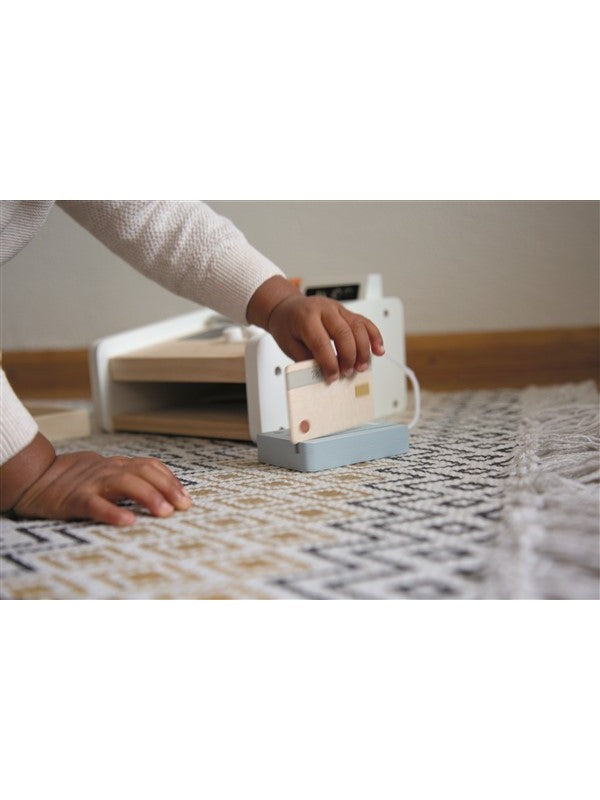Gemaakt van duurzaam FSC-gecertificeerd hout en afgewerkt met kindvriendelijke verf op waterbasis, stimuleert dit rollenspel alle zintuigen veilig én stijlvol. Spelenderwijs leren kinderen cijfers, geldbegrip en strategisch spel — tijdbesparend én leerzaam. Dankzij het moderne ontwerp is deze kassa niet alleen plezierig, maar ook een decoratieve eyecatcher in de kinderkamer.
