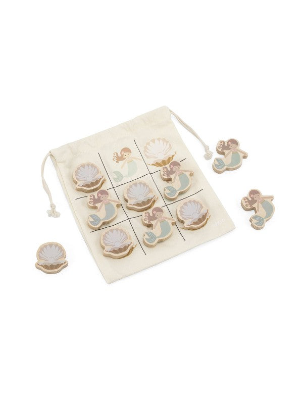 Ontdek het betoverende Wooden Tic Tac Toe – Mermaid editie! Speel het klassieke boter-kaas-en-eieren opnieuw, deze keer met prachtige houten zeemeerminnen en parels. Leg als eerste drie op een rij — horizontaal, verticaal of diagonaal — om te winnen. Dit compacte spel komt in een katoenen opbergtasje dat ook als speelbord dient, perfect voor onderweg of gezellig thuis.