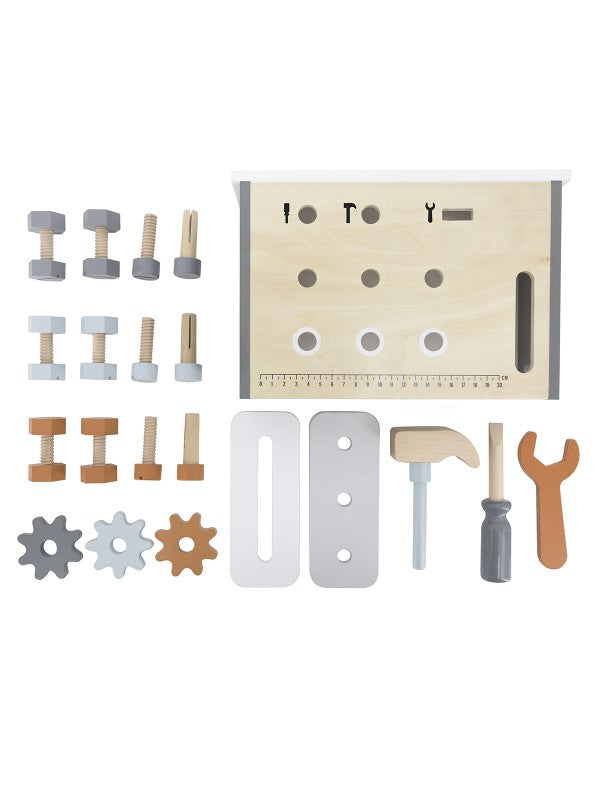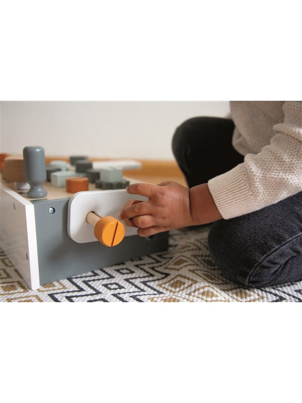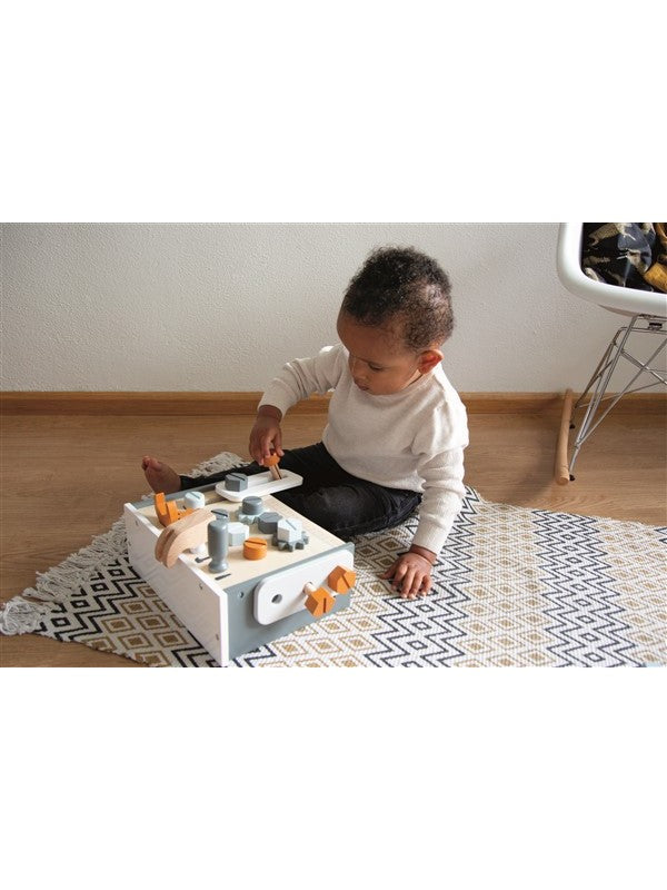 Voor kleine klussers in de dop is de Tryco houten werkbank compact, stoer en helemaal compleet met bouten, moeren, tandwielen en gereedschap. Kinderen kunnen draaien, timmeren, schroeven en combineren, en zo eindeloos bouwen en ontdekken. De werkbank is gemaakt van duurzaam FSC‑gecertificeerd hout en afgewerkt met kindvriendelijke verf op waterbasis. Tijdens het spelen ontwikkelen kinderen hun motoriek, probleemoplossend vermogen en creativiteit. Dankzij de moderne kleuren is het een mooie aanvulling in de woonkamer of kinderkamer. Het compacte formaat maakt deze werkbank eenvoudig neer te zetten en weer op te bergen. De set bevat onder andere een hamer, zaag, moersleutel en bouten, zodat kleine bouwers direct aan de slag kunnen. Het open ontwerp stimuleert rollenspel en maakt dit speelgoed zeer geschikt als persoonlijk cadeau of kraamcadeau. Zoek je duurzaam houten speelgoed dat jarenlang meegaat? Dan is deze werkbank niet alleen een plezier om mee te spelen, maar ook een stijlvolle toevoeging in de kinderkamer. Combineer met ander Tryco houten speelgoed voor nog meer speelplezier.